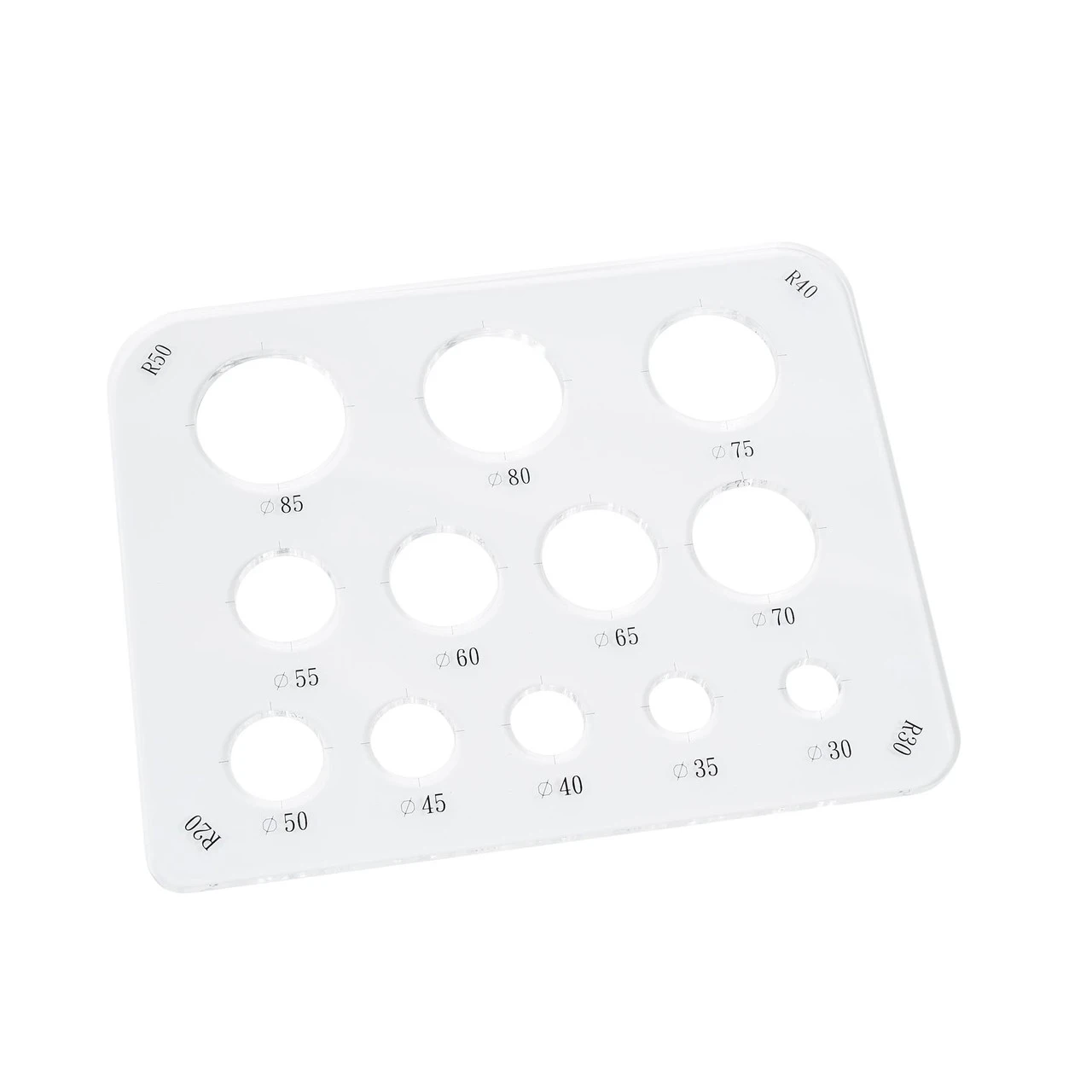- 4 different 1/4 circle radii: 20mm, 30mm, 40mm and 50mm