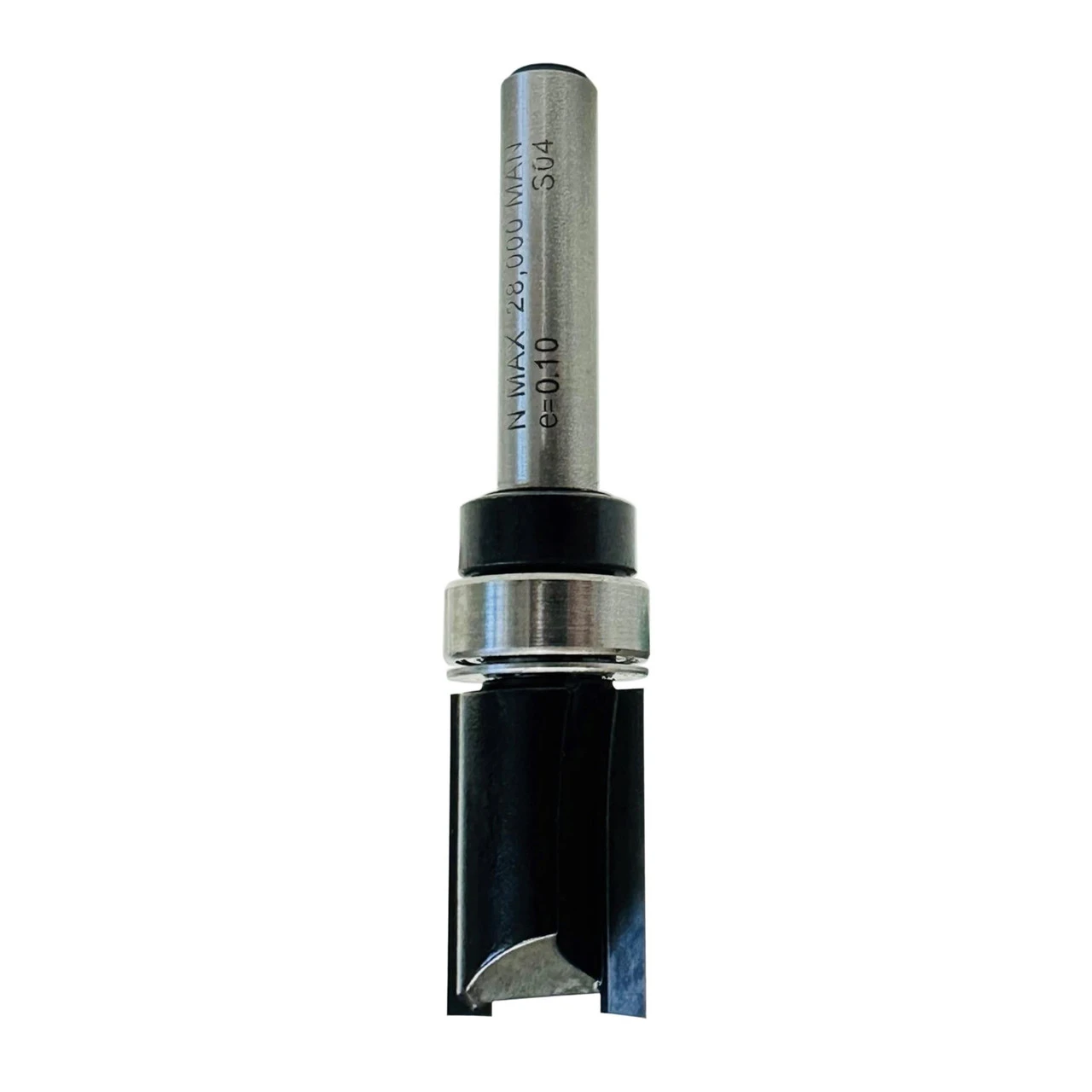 The Template Trim Router Cutter is a 1/4″ shank, 12.7mm wide, two-flute trimming cutter with the guide bearing mounted on the cutter shank.