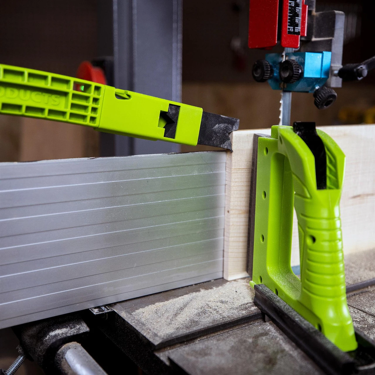 - Non-marring high-density foam pads will not mar even the softest wood under high tension. Plastic push sticks can dent softwood or compress the surface adversely affecting stain and glue absorption.