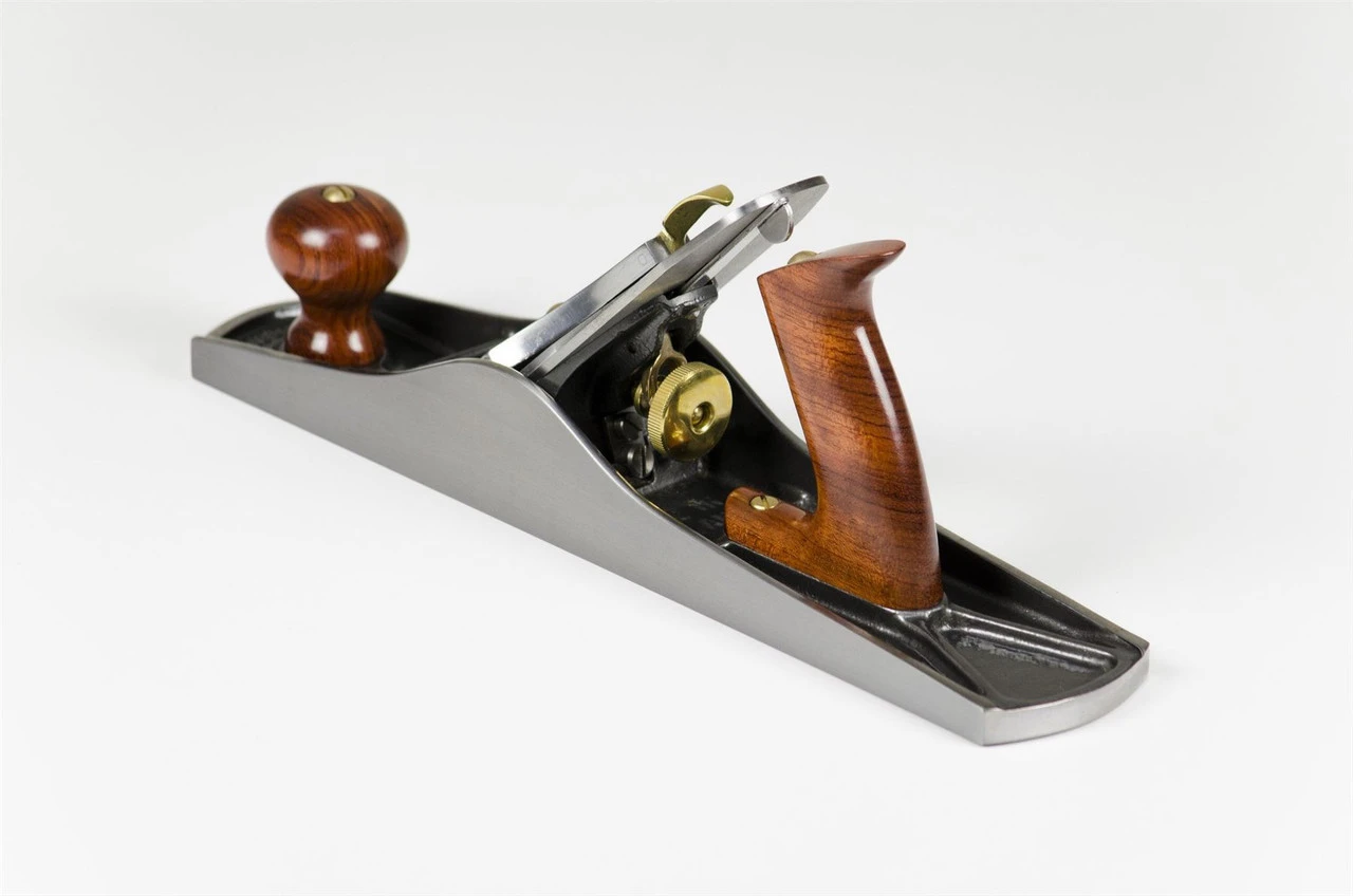 The knob and handle are carefully shaped from Bubinga hardwood sanded to fit your hand perfectly and sealed giving a very tactile and comfortable plane.Â