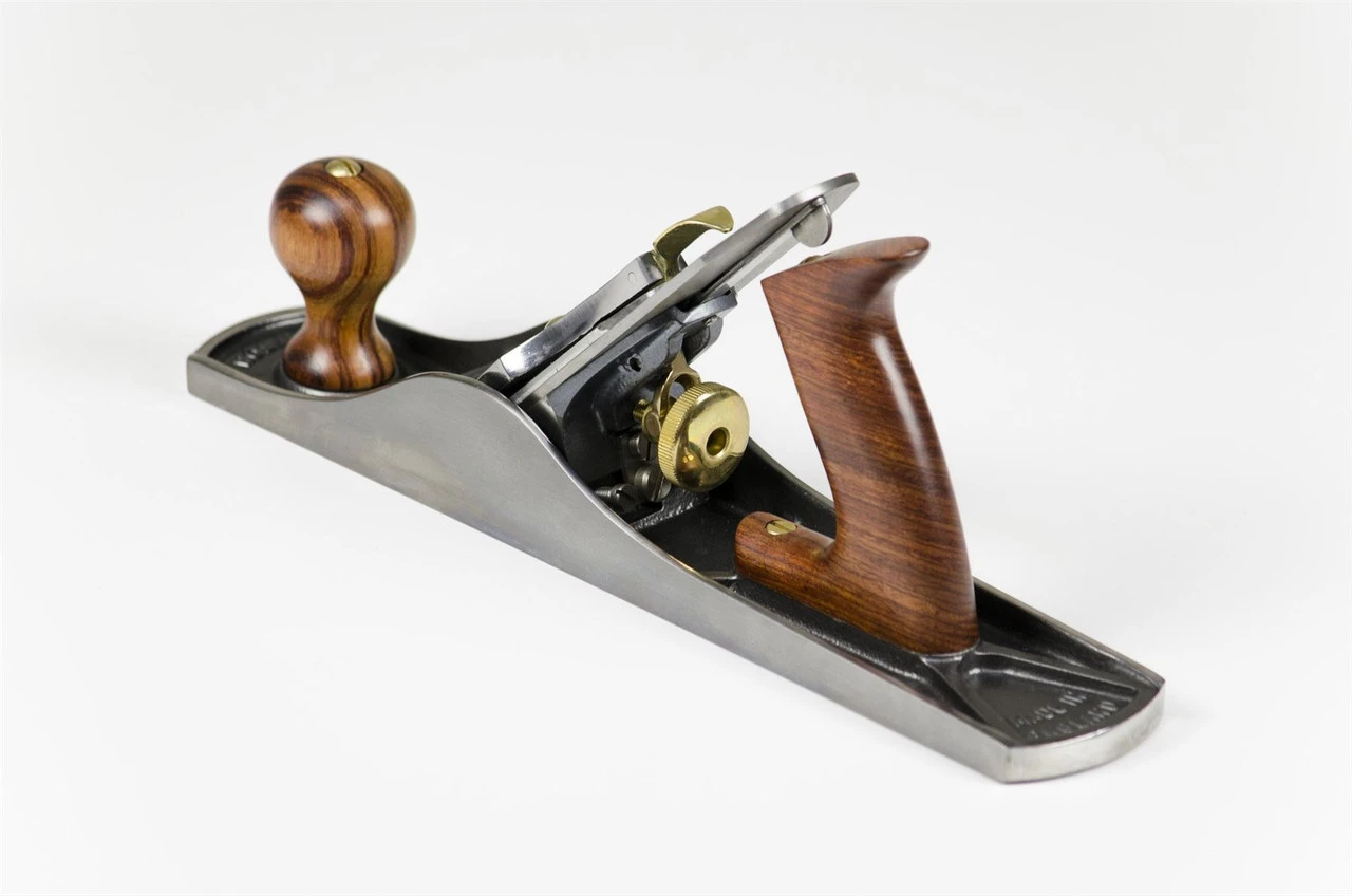 The Knob and Handle are carefully shaped from Bubinga hardwood sanded to fit your hand perfectly and sealed giving a very tactile and comfortable plane.