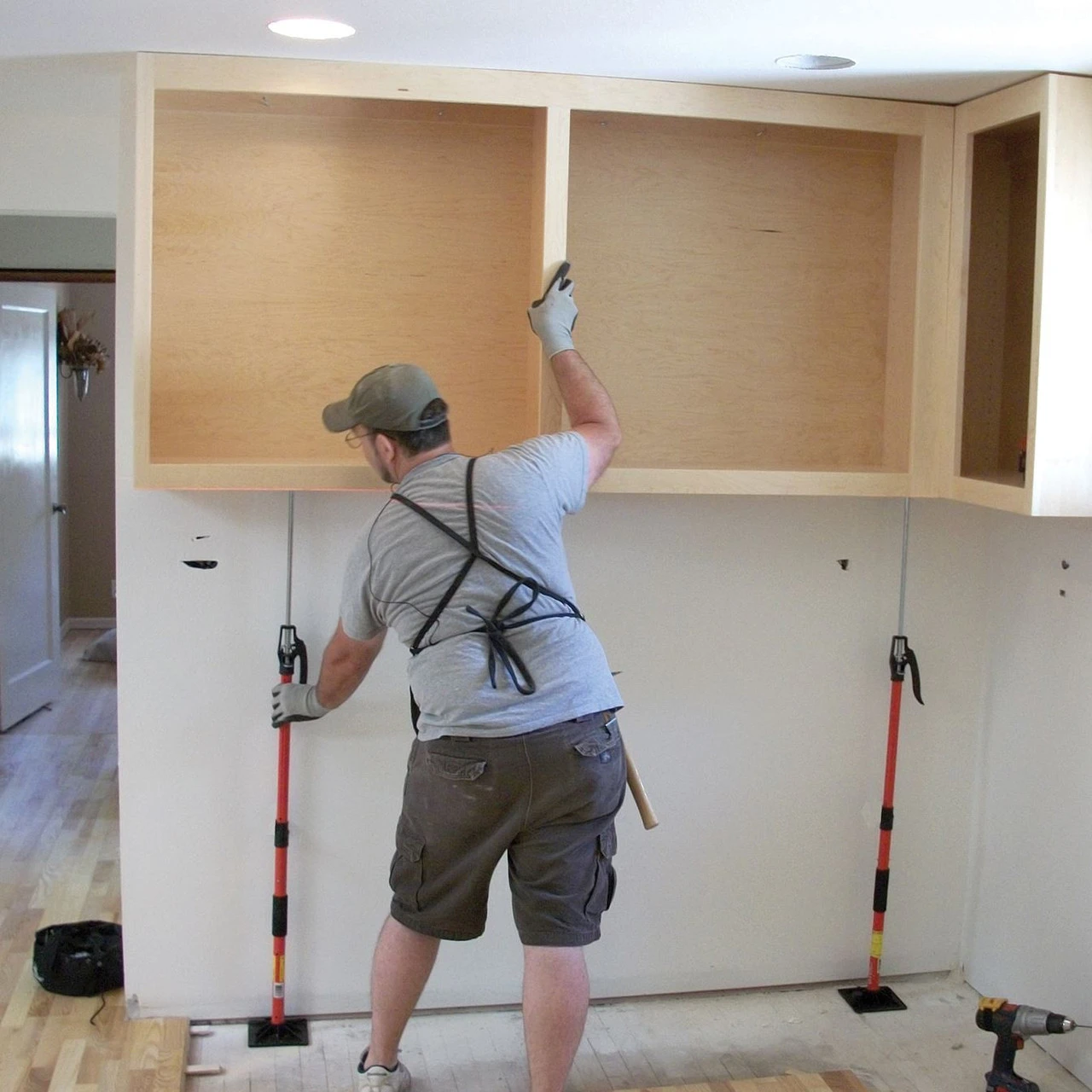 The FastCap Upper Hand is a versatile mid-sized 3rd Hand product with a measurement of 28″Â that can extend to 60″. The Upper Hand is perfect for installing upper cabinets before the base cabinets are installed.