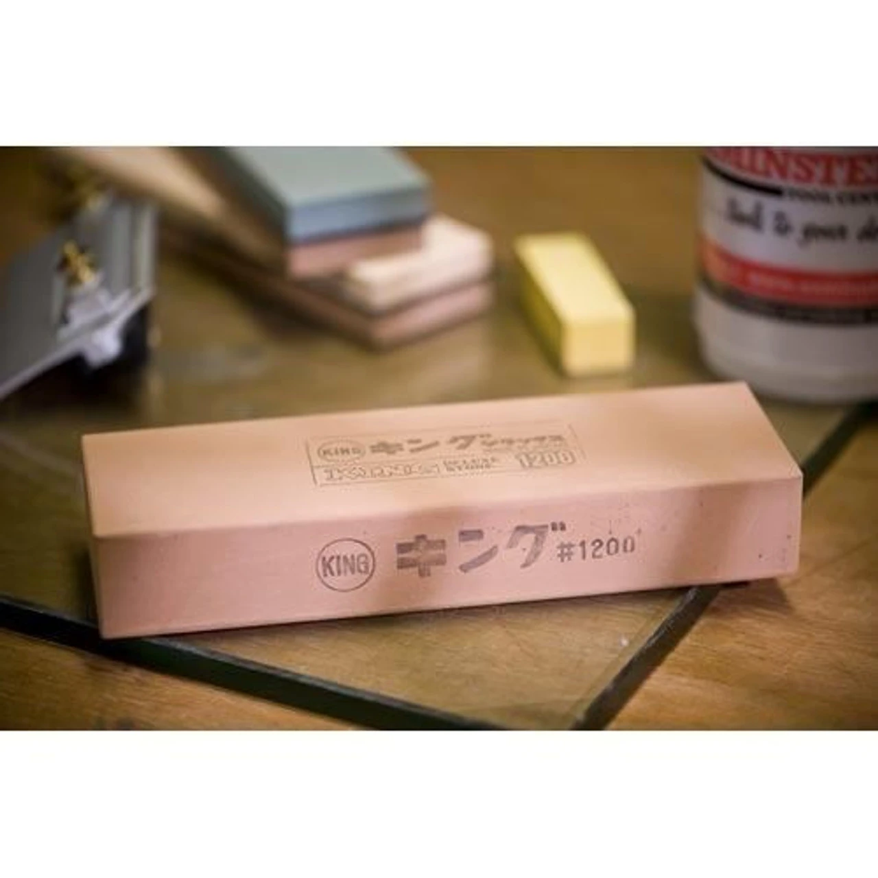 Medium 1,200 grit Waterstones are used to remove scratches and further refine and partly polish the surface following honing on a coarse stone.