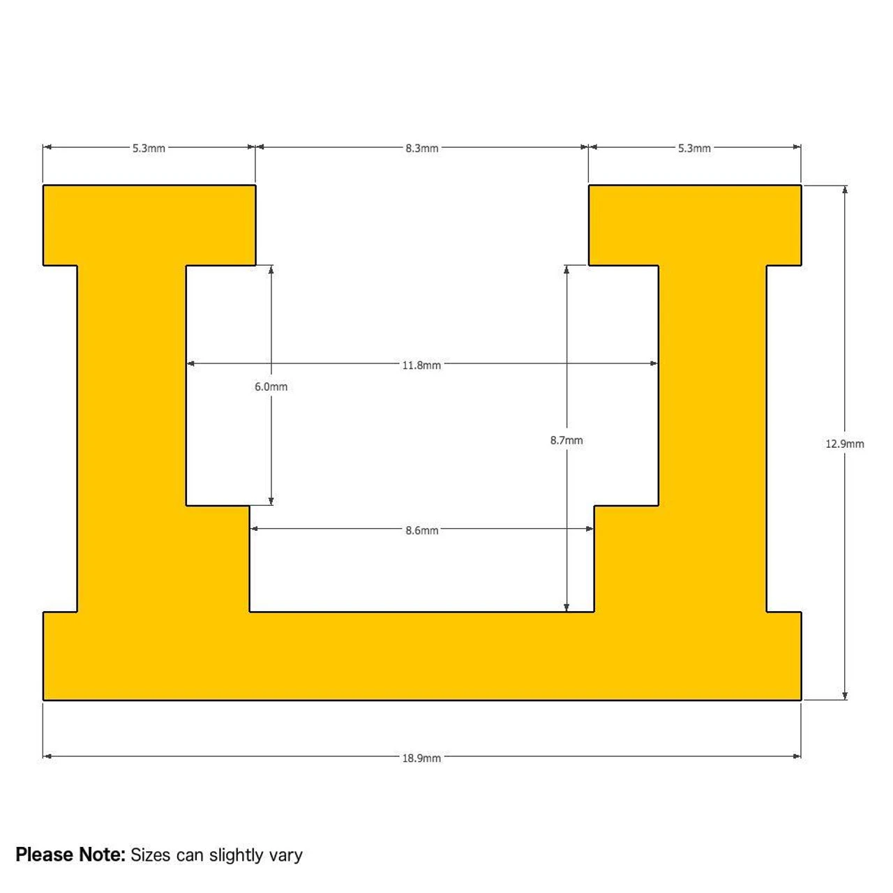 - External measurements 0.75″ wide x 0.5″ deep