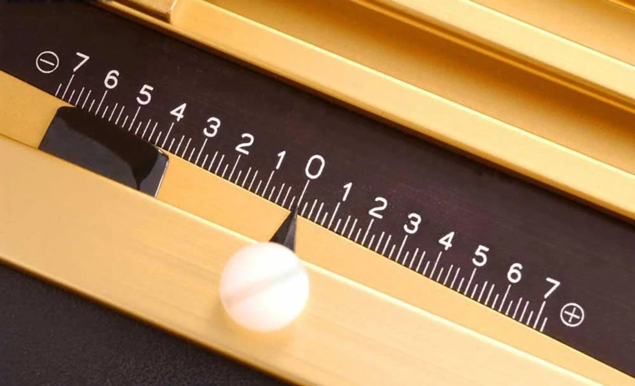 The Wonder Fence is also adjustable for offset between the infeed and outfeed halves. A pair of opposed wedges behind each fence half provides a true, continuous micro adjust for the relation-ship between the fence halves, and laser engraved offset scales are marked every 0.002″ for an accurate reference. It’s a huge improvement over stacking spacers behind the outfeed fence achieve a sort of offset.