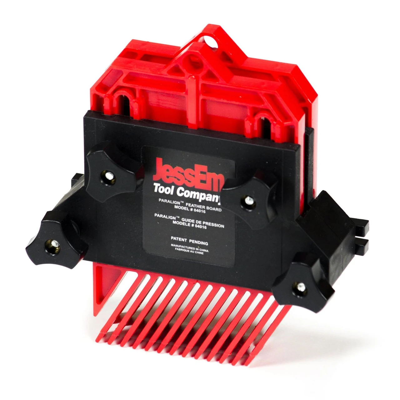 Paralign Feather Boards for use with router tables, shapers, band saws and table saws. This feather board features an innovative design that allows you to adjust parallel to your work while remaining clamped to your table or fence. No more trial and error trying to adjust your feather boards correctly. With the JessEm Paralign Feather Boards just loosen the two adjustment knobs and slide them to the correct position while they remain parallel to your work.