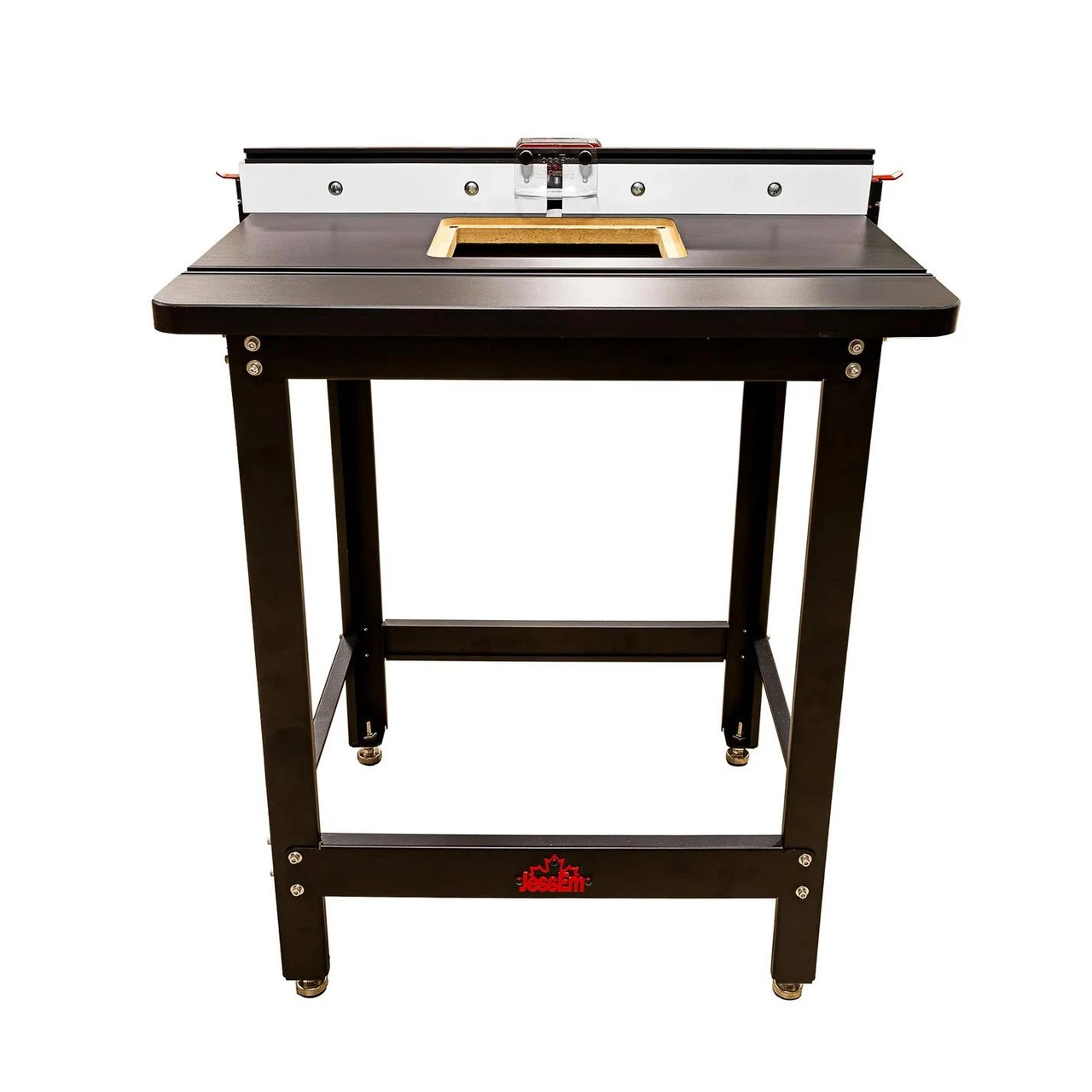 JessEm’s heavy-duty router table stand is manufactured in JessEm’s custom-built facility in Canada using 14 gauge steel and powder coated with a black satin textured finish.