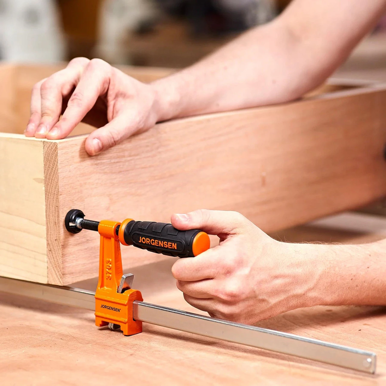 The Jorgensen steel bar clamps are seriously strong. Cast-iron stationary and sliding heads finished in an orange powder coat are complimented with a high-carbon, rust-resistant steel bar. The fast-acting sliding head is acme threaded to accommodate a cold-drawn steel screw with a large easy-grip handle and swivel pad. The original multiple-disc-clutch design allows the sliding head to hold securely at any point along the bar.