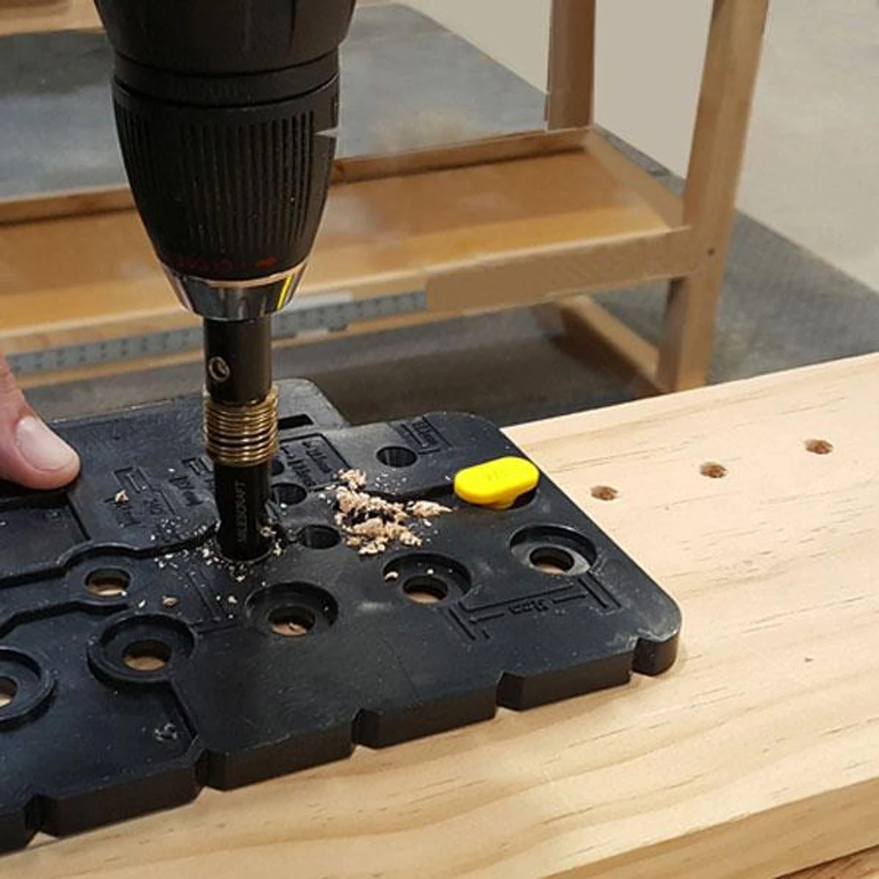 - Drill perfectly centred holes for shelf pins