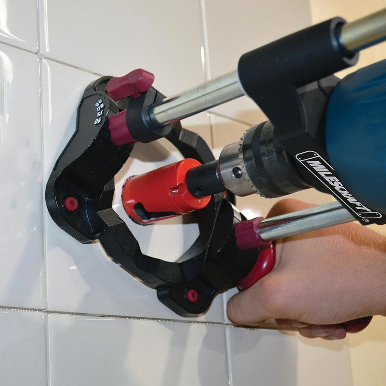 You can’t take a drill press with you everywhere you go, but you can take a Milescraft® DrillMate™. This portable drill guide makes it quick and easy to drill precise holes at multiple angles. The DrillMate™ saves time and eliminates frustration when drilling multiple holes in all materials and shapes of stock, including timber, ceramic tiles and tubular metal or plastic. This all-metal construction drill guide provides the precision of a pillar drill with the portability of a hand drill.
