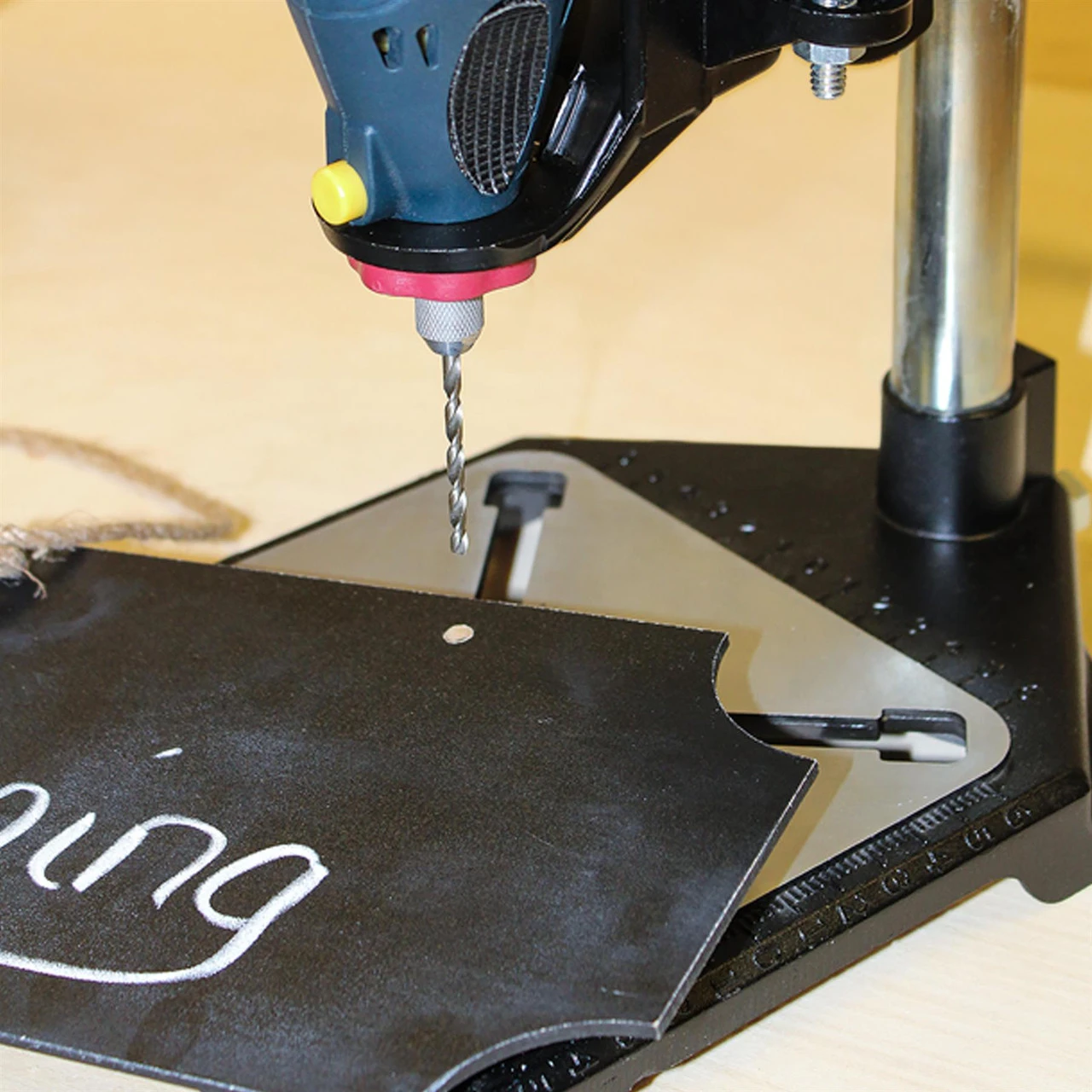 Transform a handheld rotary tool into a precision drilling machine with the Milescraft® ToolStand™. This stand is compatible with most common rotary tools. The ToolStand™ acts as a drill press to cut perfectly perpendicular holes. Rotate the ToolStand™ main housing into a horizontal position and use it for tasks like polishing, grinding, and sanding.
