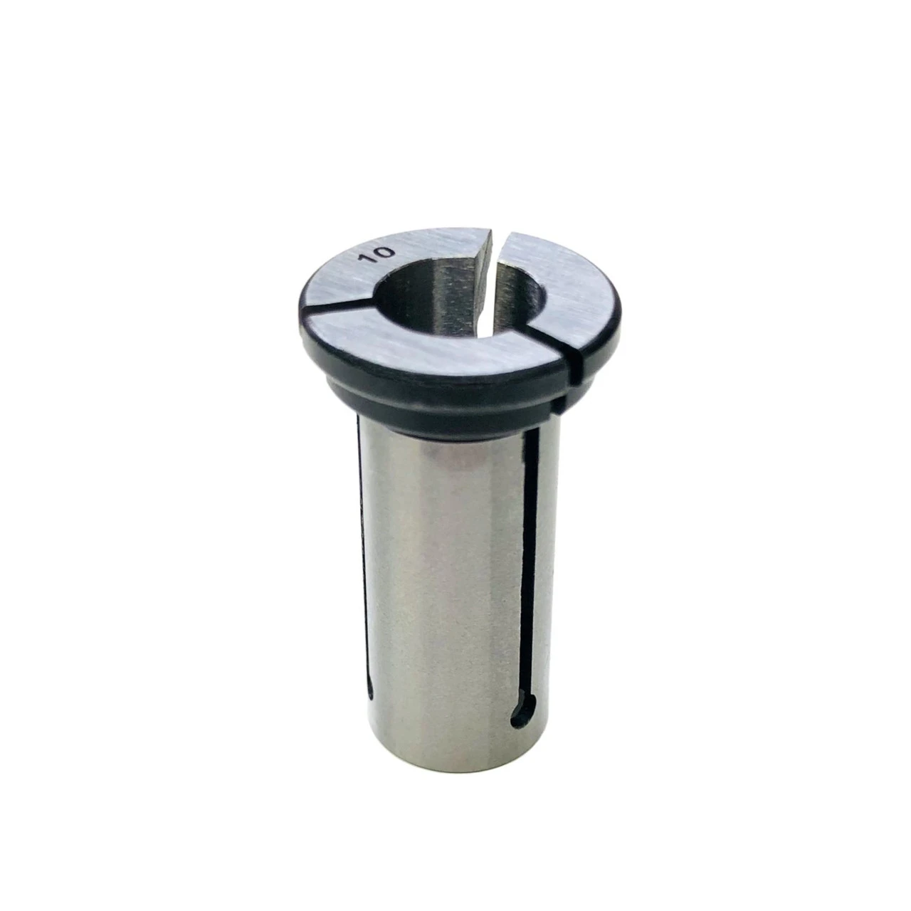 The Musclechuck Router Collet Reduction Sleeve is a universal split-type steel bushing that allows you to use 10mm shank router bits in 1/2″ collets.