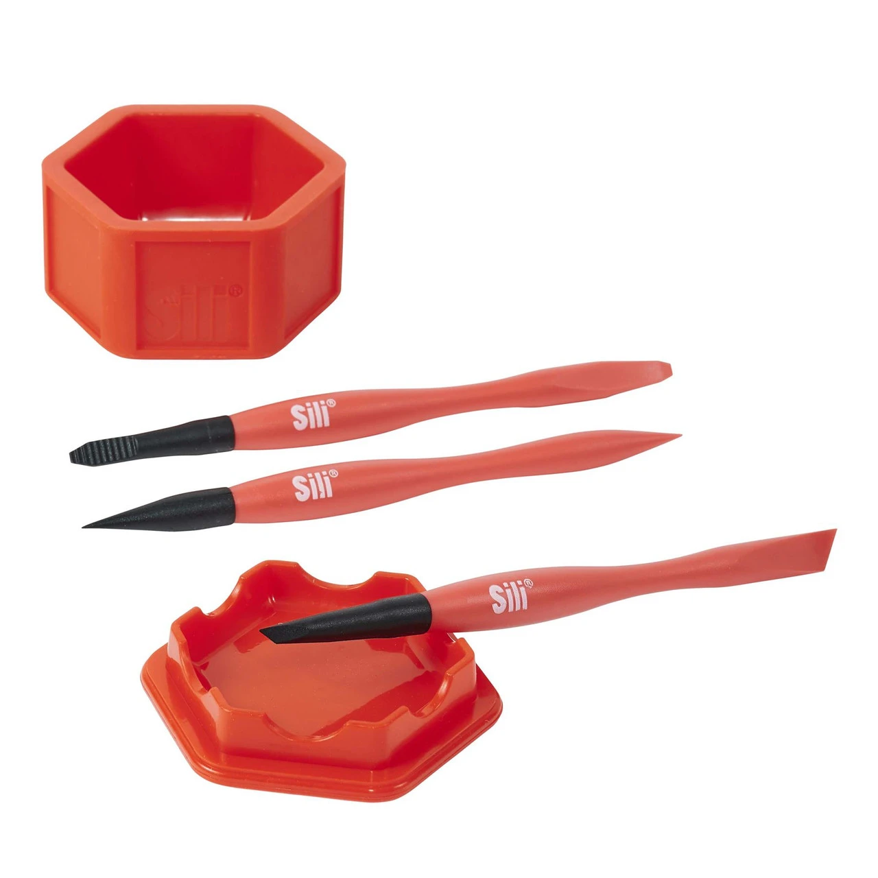 Whether you’re using wood glue, school glue or mixing epoxy, if you don’t have a place to put the glue while working, it can become messy. With several smart design features, the Sili Glue Pod will be able to keep your glue where it belongs. The Sili Glue Pod features a sloped, rounded interior base that funnels your glue into place at the bottom of the Pod. The Pod’s hexagon shape is perfect for easy, quick glue brush dipping and dabbing for just the right amount of glue for your application.