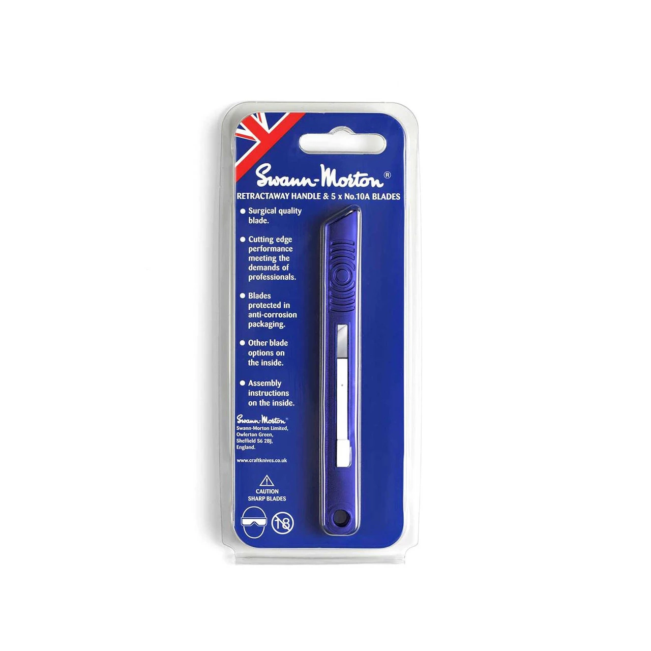 The Retractaway Premium Knife Set offers the added safety of a hand retractable blade mechanism. It is a highly versatile cutting tool produced with woodworkers, designers, graphic artists and model makers in mind. With easy blade changing in the forward slider position, once fitted , the blade can be safely retracted to the mid usage position or fully into the handle for the back safe storage position.