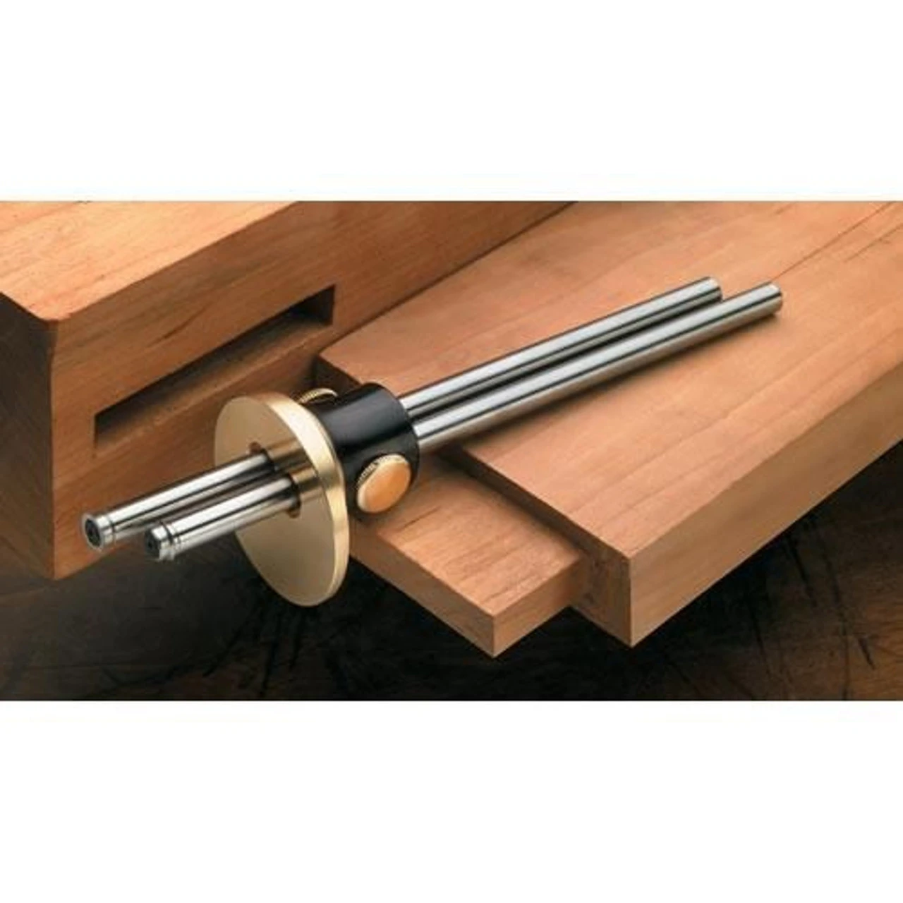 Veritas Dual Marking Gauge features two independently adjustable rods, which mean this gauge can scribe both sides of a mortice at once. The length of each ground stainless-steel rod is very precise.