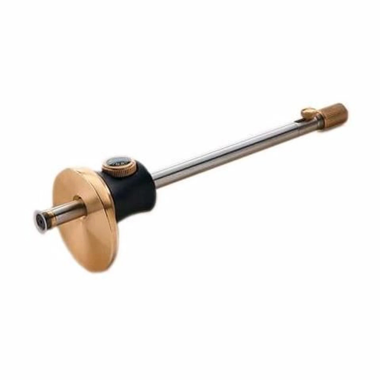 The offset placement of the rod through the brass faced aluminium body ensures a large reference surface and square registration on the stock. It also prevents the gauge rolling off your bench.