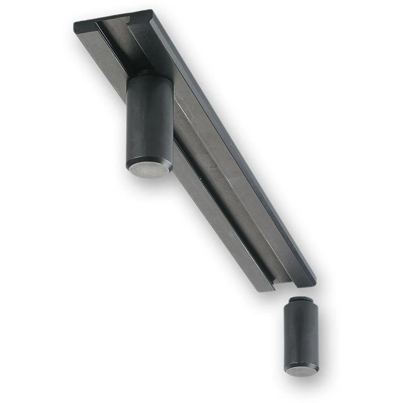 Veritas Planing Stop 445mm is a perfect holding solution when hand planing thin or wide stock on your bench top. The anodised 445mm long aluminium rail projects just 5.5mm above the bench top, allowing you to plane boards as thin as 6mm without obstruction. Two steel posts, sized to fit into 19mm dog holes, slide along a T-track on the underside of the rail.Â