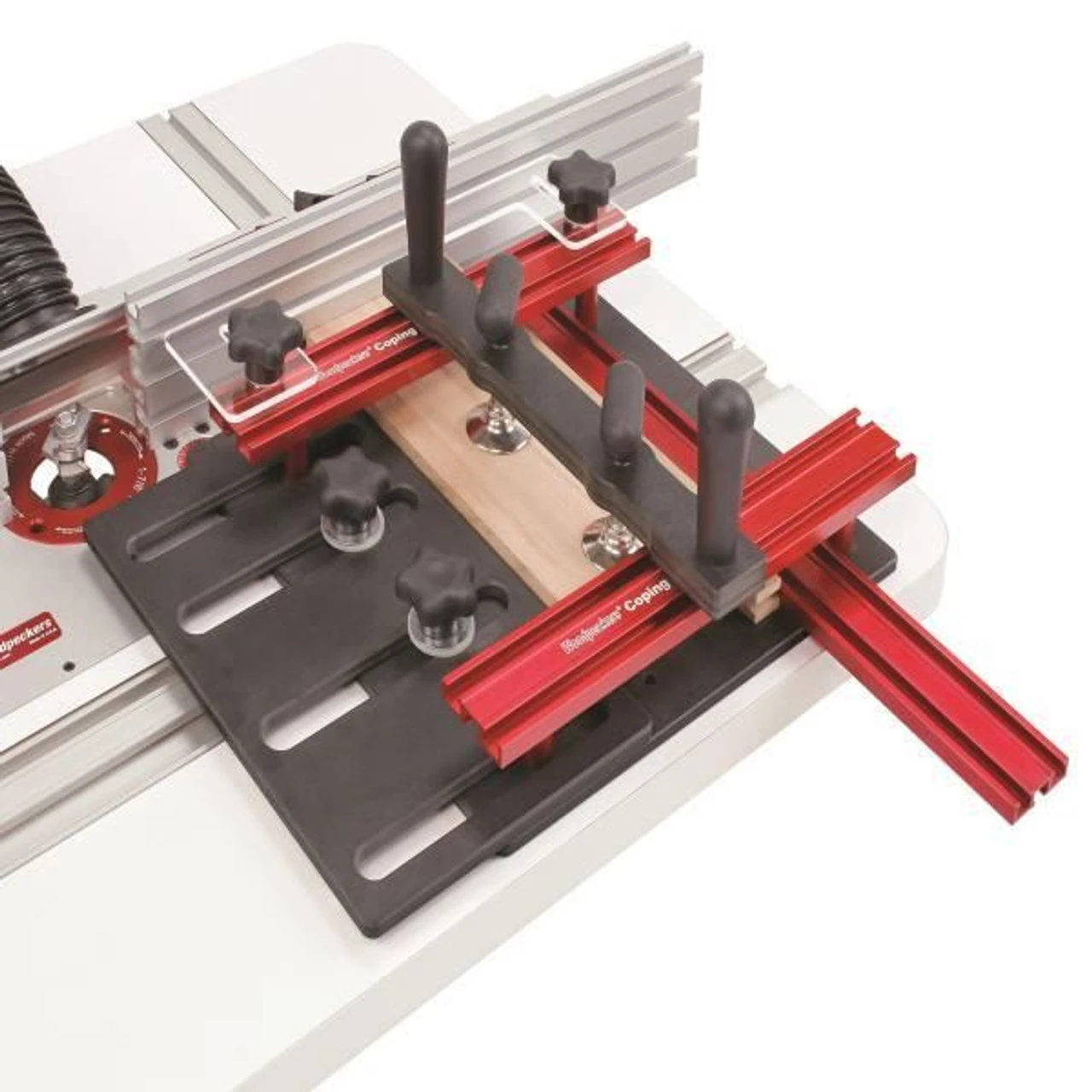 Woodpeckers Coping Sled is the router table accessory you need to make rail and style doors, tenons, lap joints and most other end grain cuts, and is the best way to ensure your board is perpendicular to the router fence and guides smoothly across the router bit.