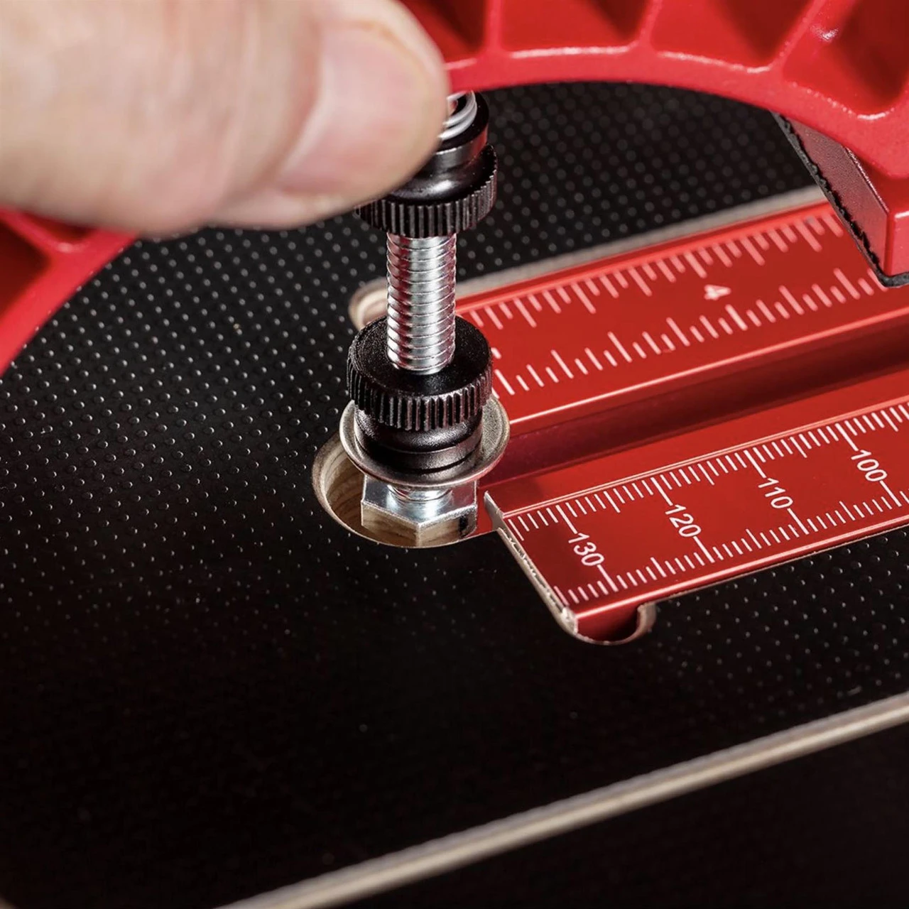 The DP-PRO Table Top is engineered with extension wings that slide out for extra support when you need it and tuck back in tight to the central table and out of the way when you don’t. The 36″ (915mm) model is 24″ (610mm) wide when the wings are tucked in and 36″ (915mm) with the wings extended. The top is made from full 1″ thick Baltic Birch plywood with black Micro-Dot laminate on both sides. The Micro-Dot surface reduces friction and holds up better to abrasion than smooth laminates. Dual Scale graduated DP-Tracks provide mounting for both the fence and hold-down clamps.