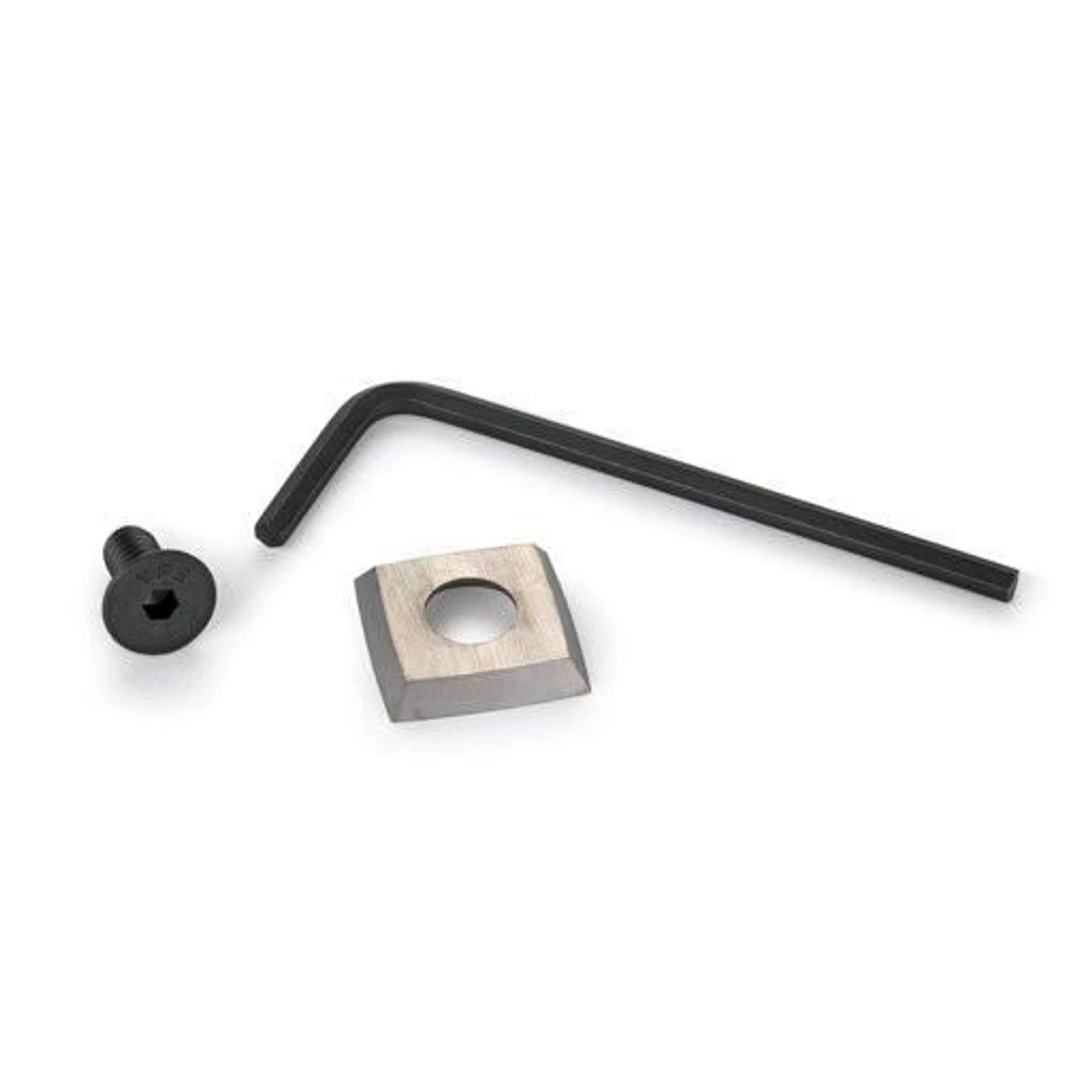 Mini-Scraper Cambered Carbide Blade with four sharp, cambered edges. Includes Blade, Hex Wrench and Screw.