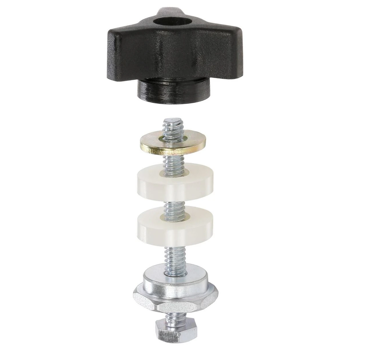 Standard T-track nuts won’t fit in table saw slots. Woodpeckers new Miter Slot Nuts will!